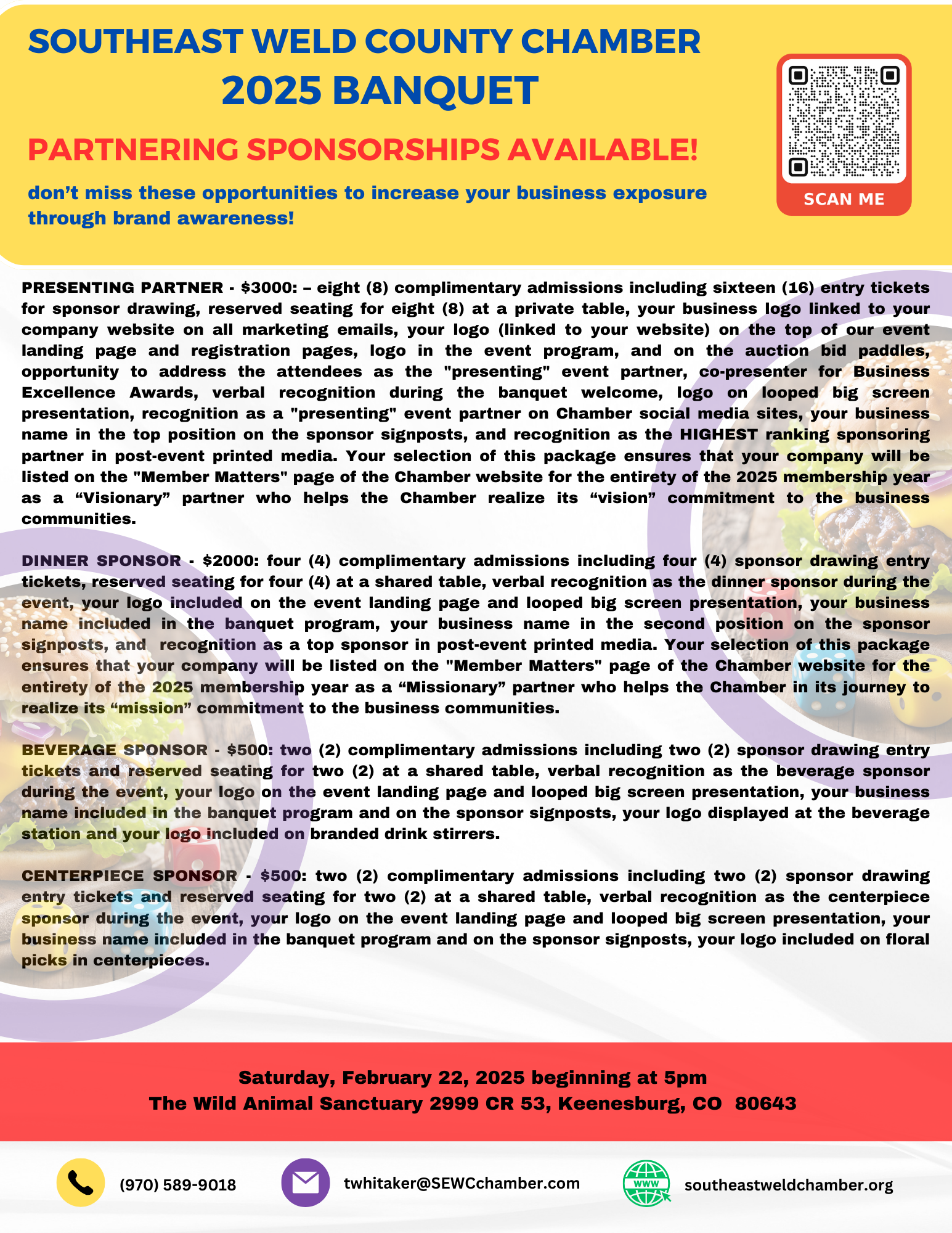 Announcing the 2025 Southeast Weld County Chamber of Commerce 2025 Annual Banquet and Business Awards Ceremony!