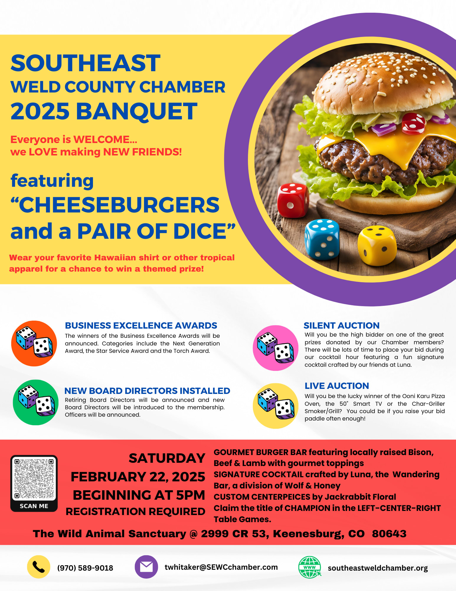 Join us for one of the most anticipated Southeast Weld County events of the year where good friends meet to celebrate the success of their local businesses! This year's event is once again made possible by the generosity of our good friends at the Wild Animal Sanctuary and all of the businesses that we are proud to call Chamber members.